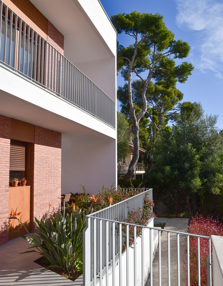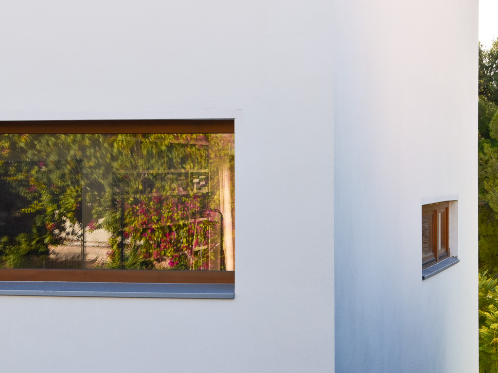 Casa para una pareja de jubilados, ubicada en Castelldefels, municipio costero cercano a Barcelona. Desde la parcela, en lo alto de una colina, se tienen unas vistas espléndidas al mar Mediterráneo. El diseño de la casa responde directamente a las premisas de los clientes: una casa cálida, moderna y compacta. Todas las estancias principales, orientadas a sur, se abren hacia las vistas y se organizan alrededor de una chimenea de obra finlandesa.