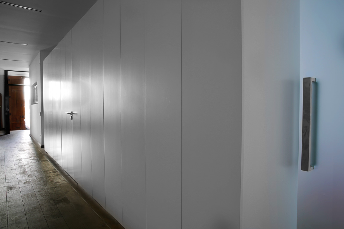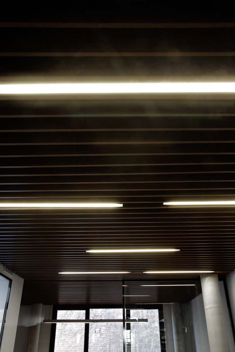 Una antigua casa entre medianeras típica del centro de Badalona ha sido reconvertida en un espacioso y luminoso despacho mediante la reforma integral del inmueble existente y su ampliación hacia un pequeño patio interior en desuso. El proyecto tiene dos partes claramente diferenciadas: la rehabilitación integral de la edificación existente —con la demolición de todos los tabiques para obtener un espacio diáfano donde se organiza la zona principal de trabajo— y la ampliación del edificio, con un nuevo volumen que alberga el despacho principal y la sala de juntas, generando además una cubierta transitable que se convierte en la prolongación exterior del piso superior. Conectando ambas zonas, un largo armario oculta los espacios de servicio: sala de espera, baño, office y la escalera que desciende al sótano. La escalera recibe iluminación cenital, creando un pozo de luz que alcanza los espacios de trabajo más alejados de la calle y articula todo el conjunto. Superficie: 180 m².